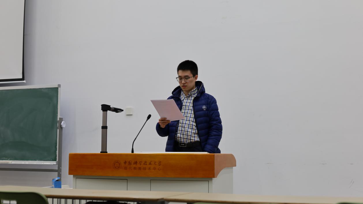 2021年3月19日晚七时,中国科大先进技术研究院第一届招新招干大会在未来中心二号报告厅如期进行。大会由主席团轮值主席齐天杨同学主持,进行第一届研究生会招干纳新工作,介绍了研会的组织架构和部门职能,并对有意竞选各部门部长、副部长的同学进行了打分考核。
