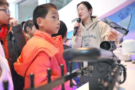在合肥大蜀山西麓,有一座“X”造型的建筑,象征着“探索未知”,是中国科学技术大学先进技术研究院的所在地。“墨子号”量子科学实验卫星模型、无人机、仿生木材……在志愿者带领下,孩子们走进先研院未来中心B0层创新成果展厅和量子科学实验卫星、量子通信京沪干线总控中心,实地参观量子通信、人工智能、纳米材料等诸多前沿成果。一系列世界先进的创新成果,让孩子们瞪大了眼睛。